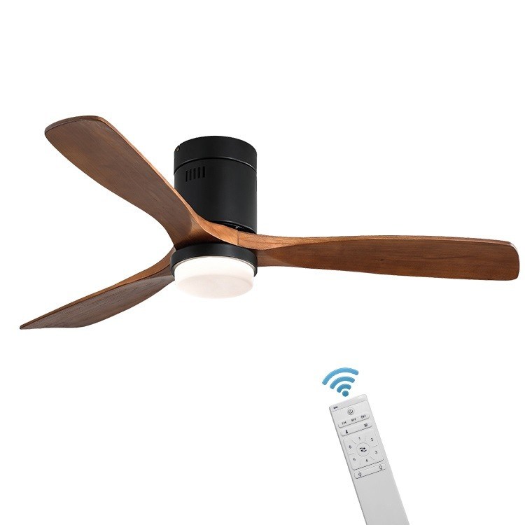 فن سقفی LED با کنترل از راه دور تیغه چوب جامد 3 سبک صنعتی مدرن با نور
